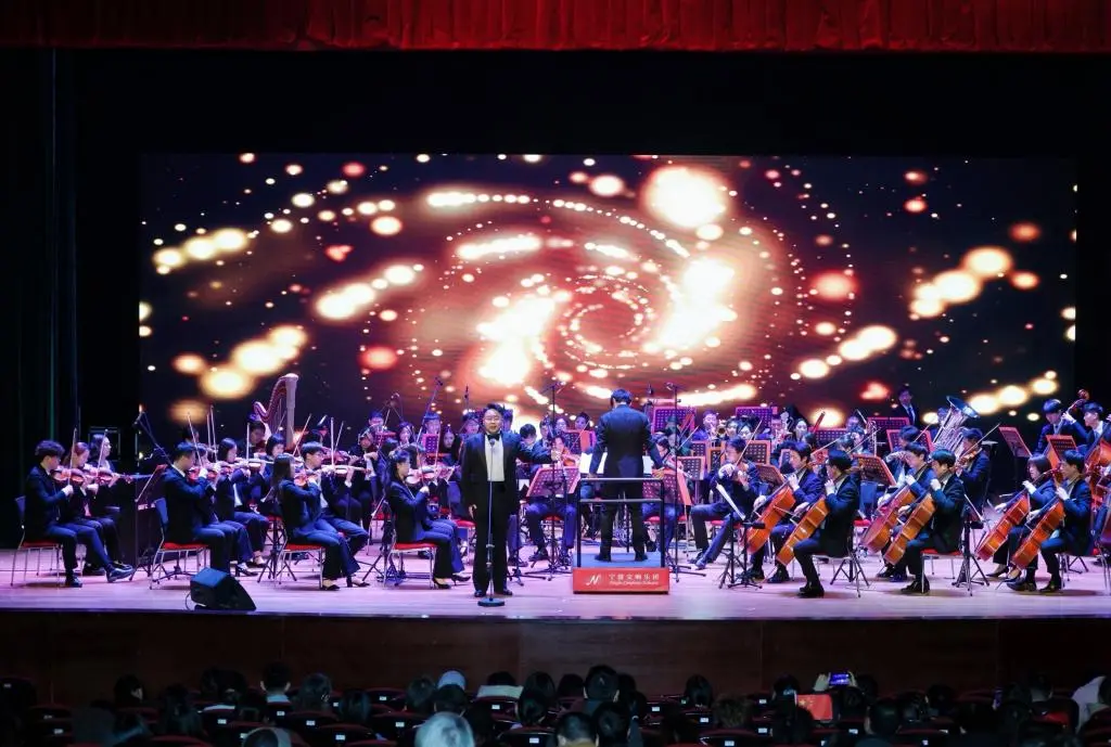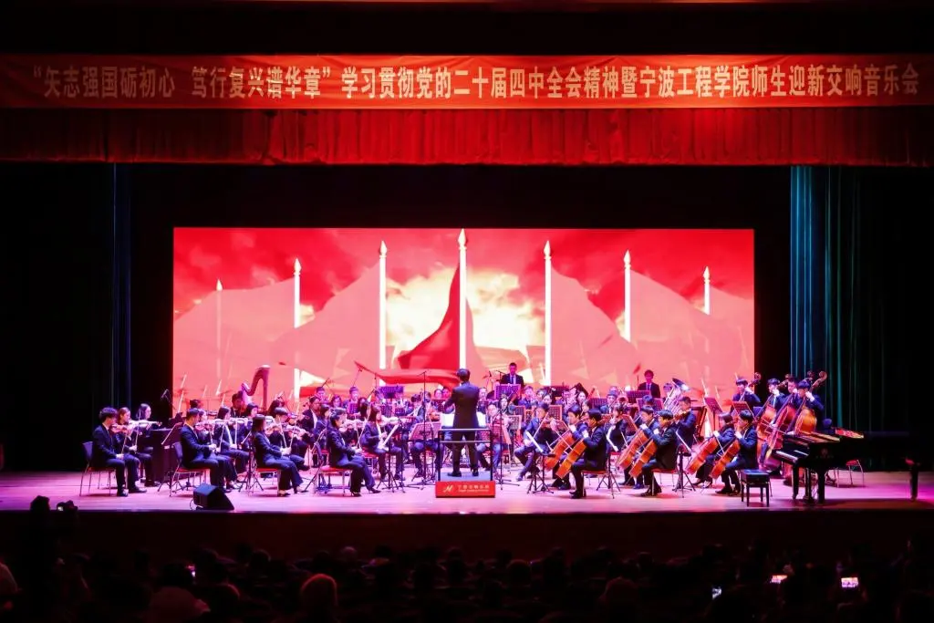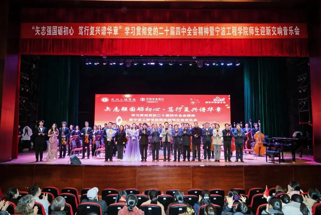 2025年12月22日晚,风华校区大剧院内旋律流淌,掌声阵阵,校友会组织校友参加的学习贯彻党的二十届四中全会暨宁波工程学院师生交响乐会在此精彩上演。宁波交响乐团以精湛的技艺和饱满的热情为宁工师生和校友们带来了一场震撼心灵的艺术盛宴以音乐叩响新年的大门。