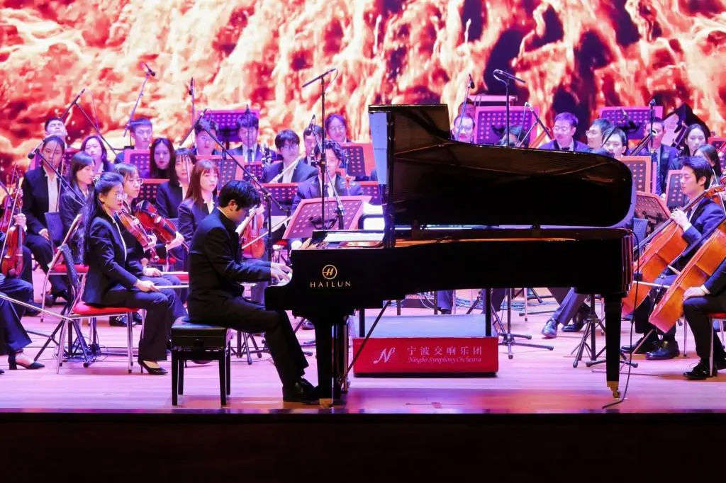 指挥方子翔化身钢琴诗人,以《黄河》钢琴协奏曲奏响民族脊梁的磅礴乐章。琴键起伏间,黄河的怒涛奔涌、民族的坚韧不屈,尽数化作宁工人赤诚的家国情怀。